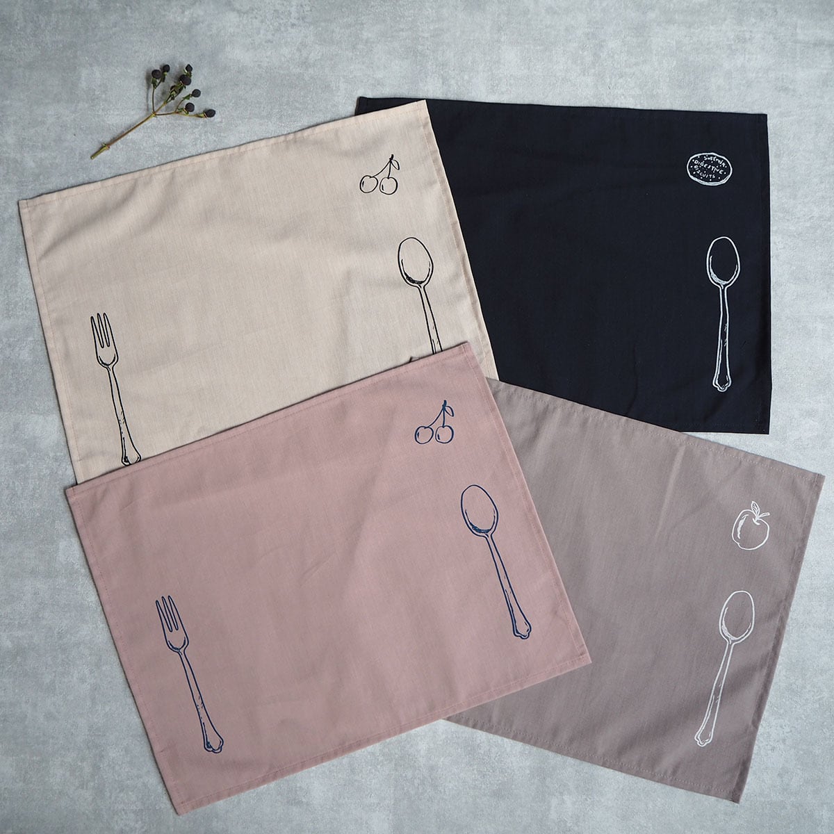 真ん中に置くランチが引き立つようにスプーンとフォークのプリントを施し、