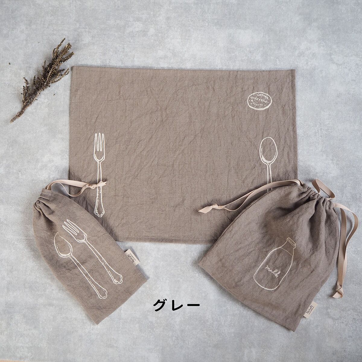 お揃いで、カトラリーケースと給食袋もありますので、良かったらご覧くださいませ。