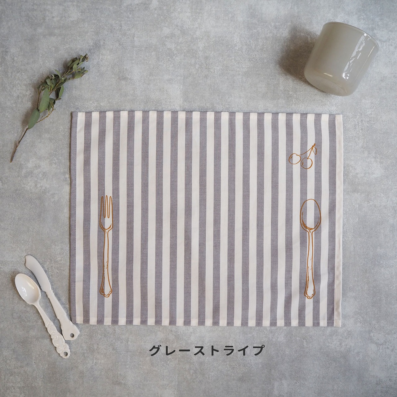 真ん中に置くランチが引き立つようにスプーンとフォークのプリントを施し、